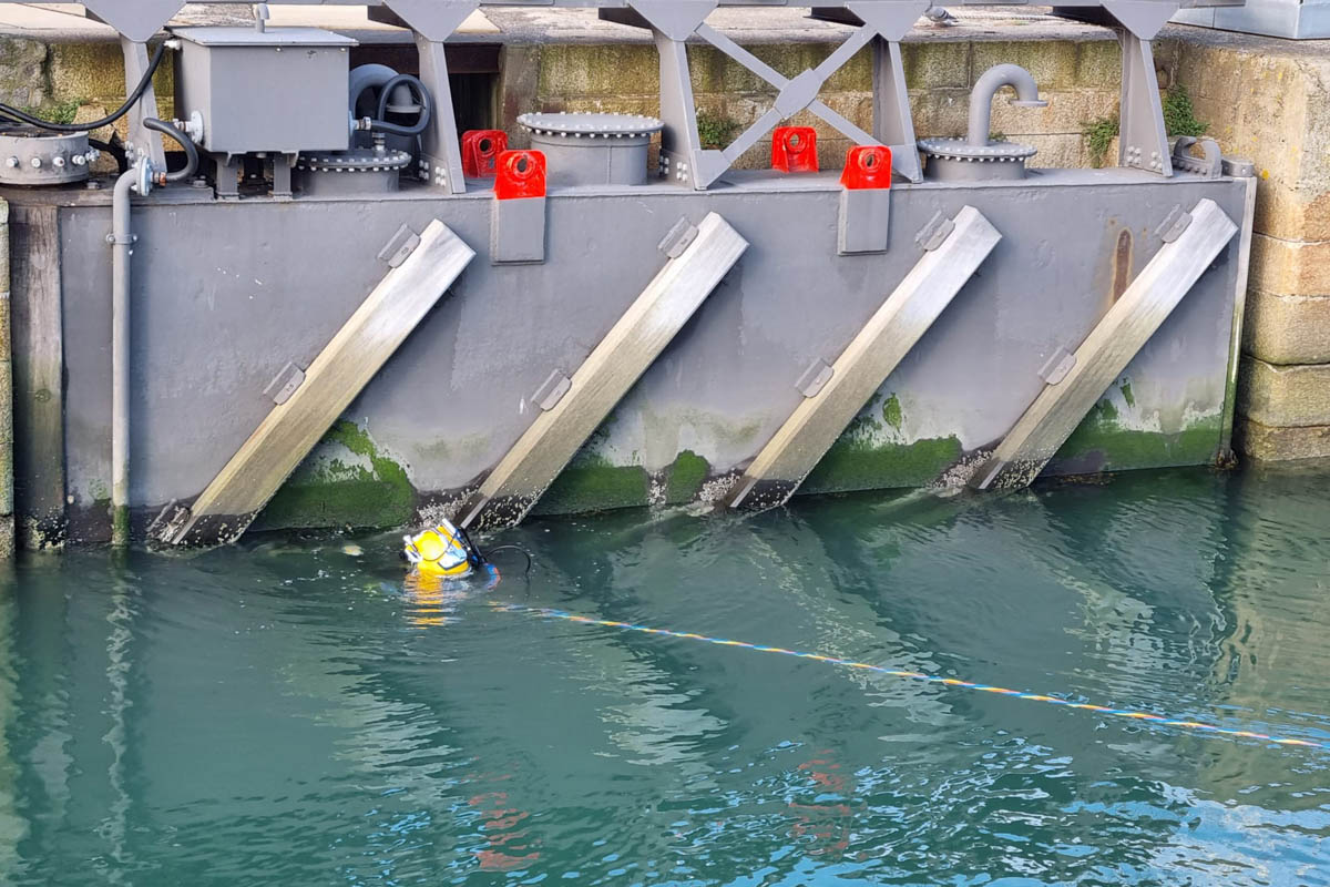 Diveworks International Ltd were contacted by Ramsgate Harbour as part of their framework agreement to complete flap gate and mitre gate inspections, as well as re-routing hydraulic hosing and determining the cause of a broken mooring chain to a floating pontoon.